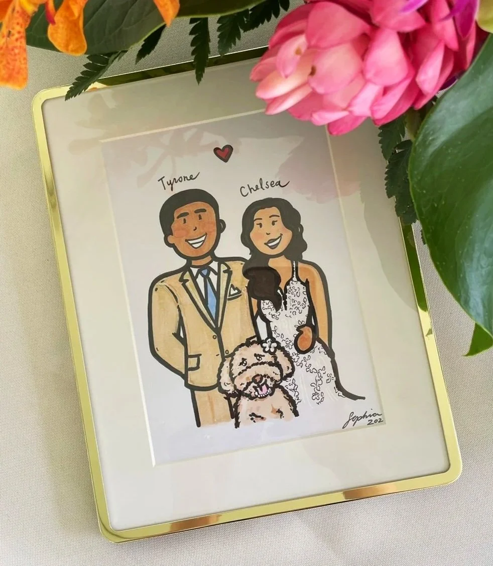 I pour my heart into every piece I create. Whether I’m drawing your loved ones live at your wedding or working on a custom design, my goal is to create art that feels fun and personal. I want your guests to smile, laugh, and walk away with a cute keepsake that they will treasure long after your celebration. Every line is drawn with joy, intention, and that cozy, light hearted SOFA touch. The keepsake is meant to feel magical and memorable.